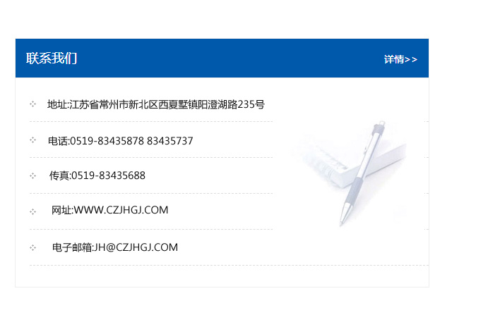傳真:0519-83435688    郵編:213135    網址:WWW.czjhgj_com.jtsunan.com    電子郵箱:JH@czjhgj_com.jtsunan.com